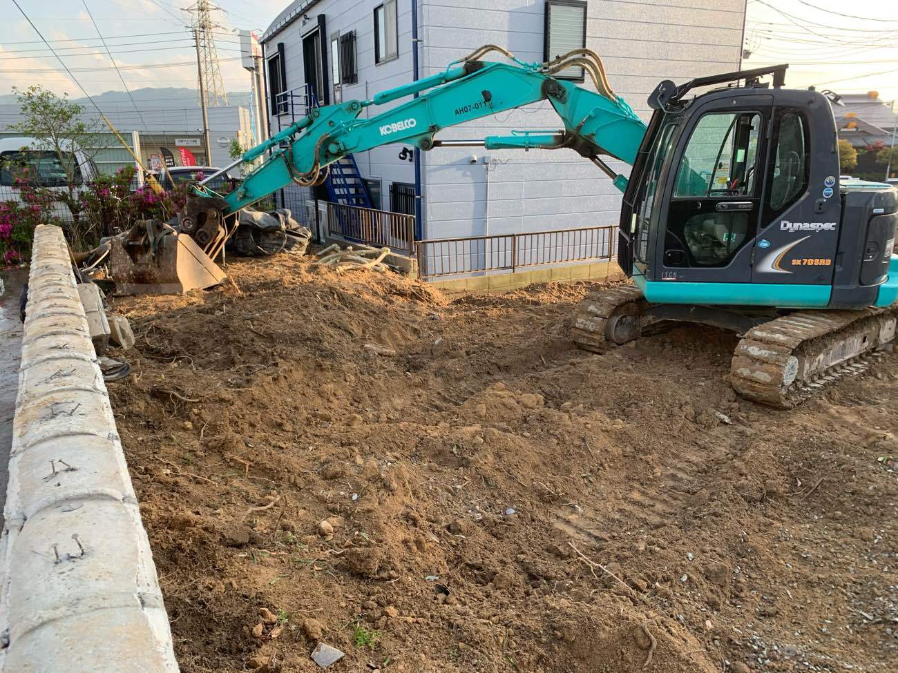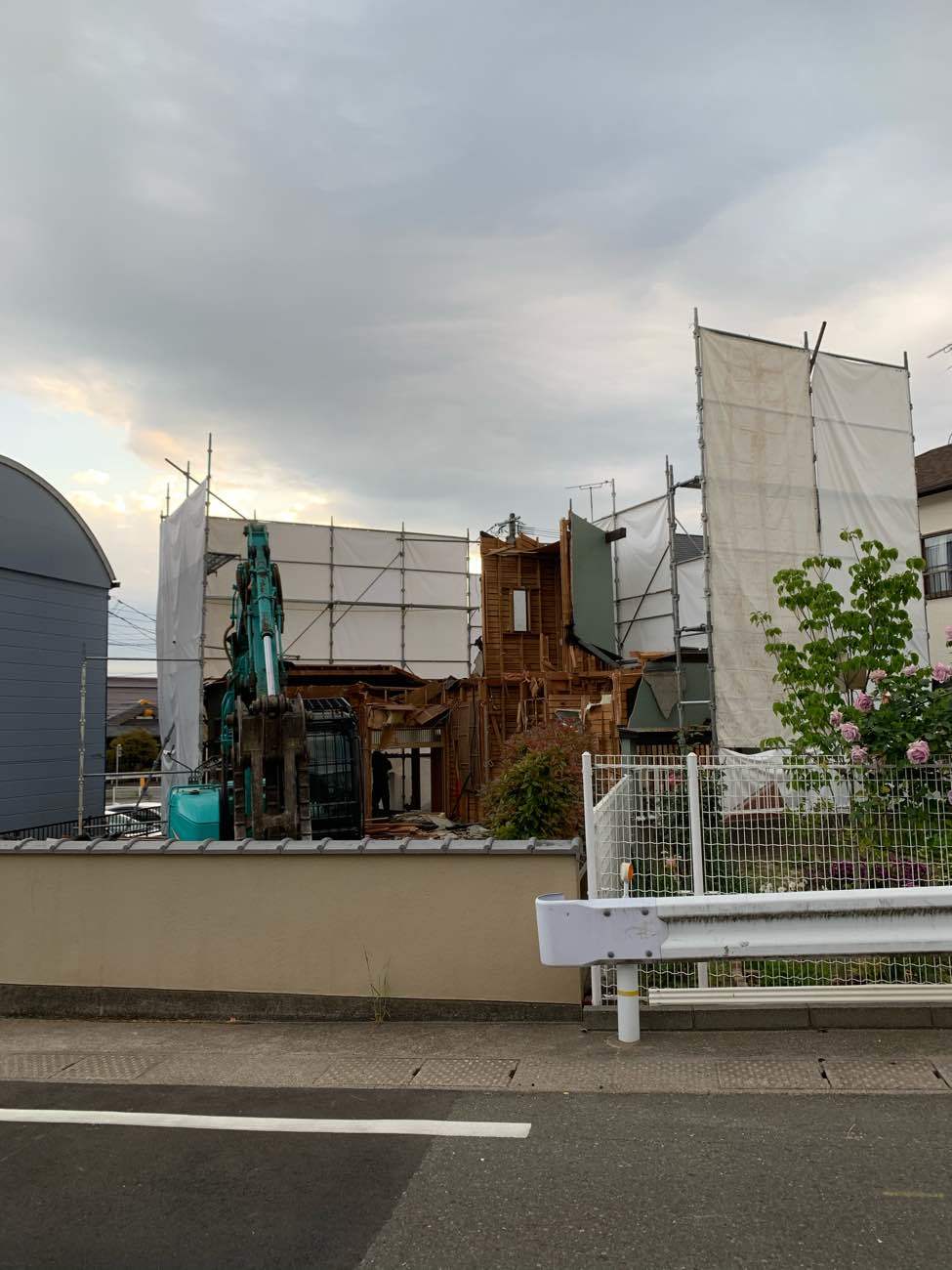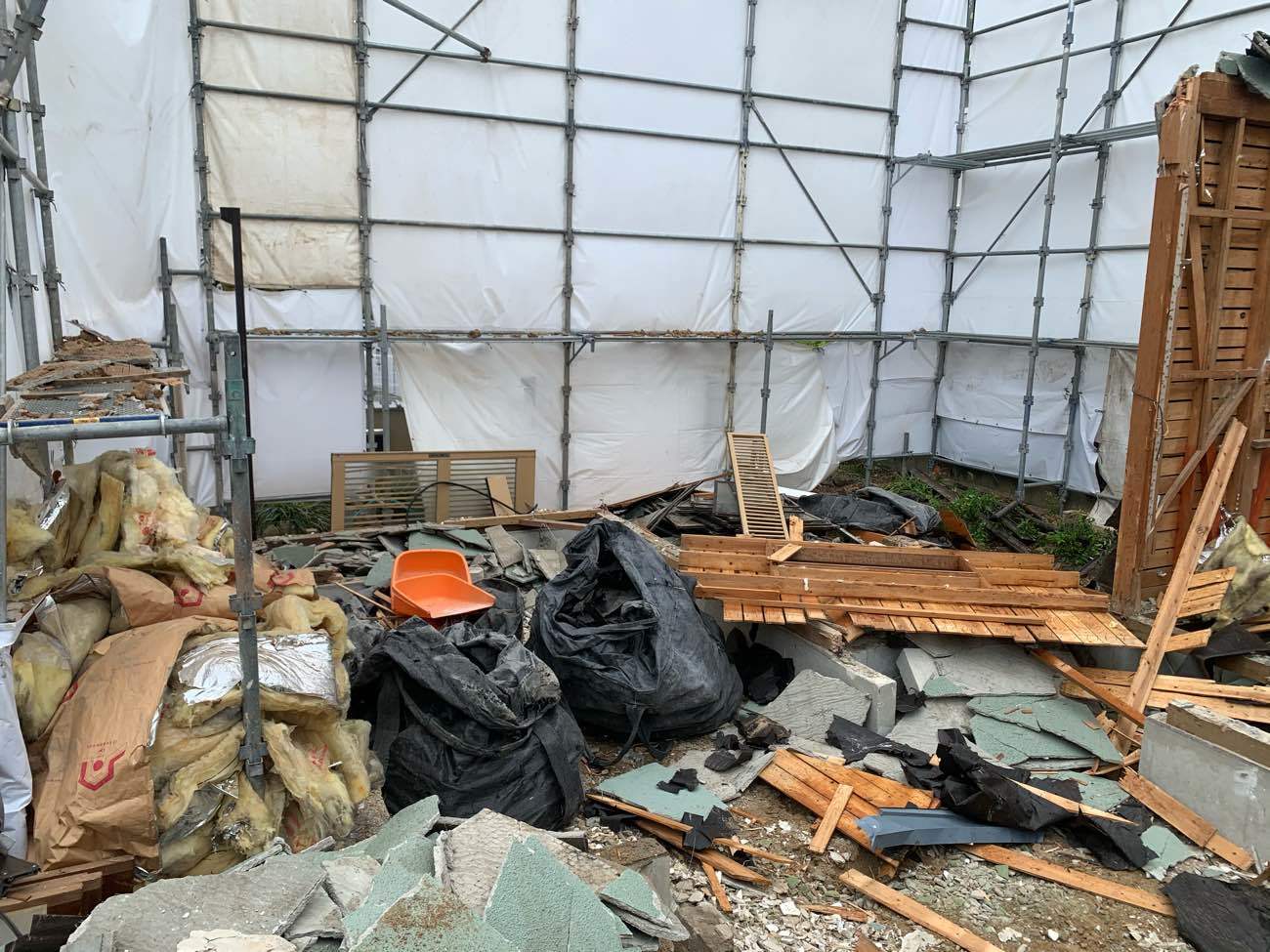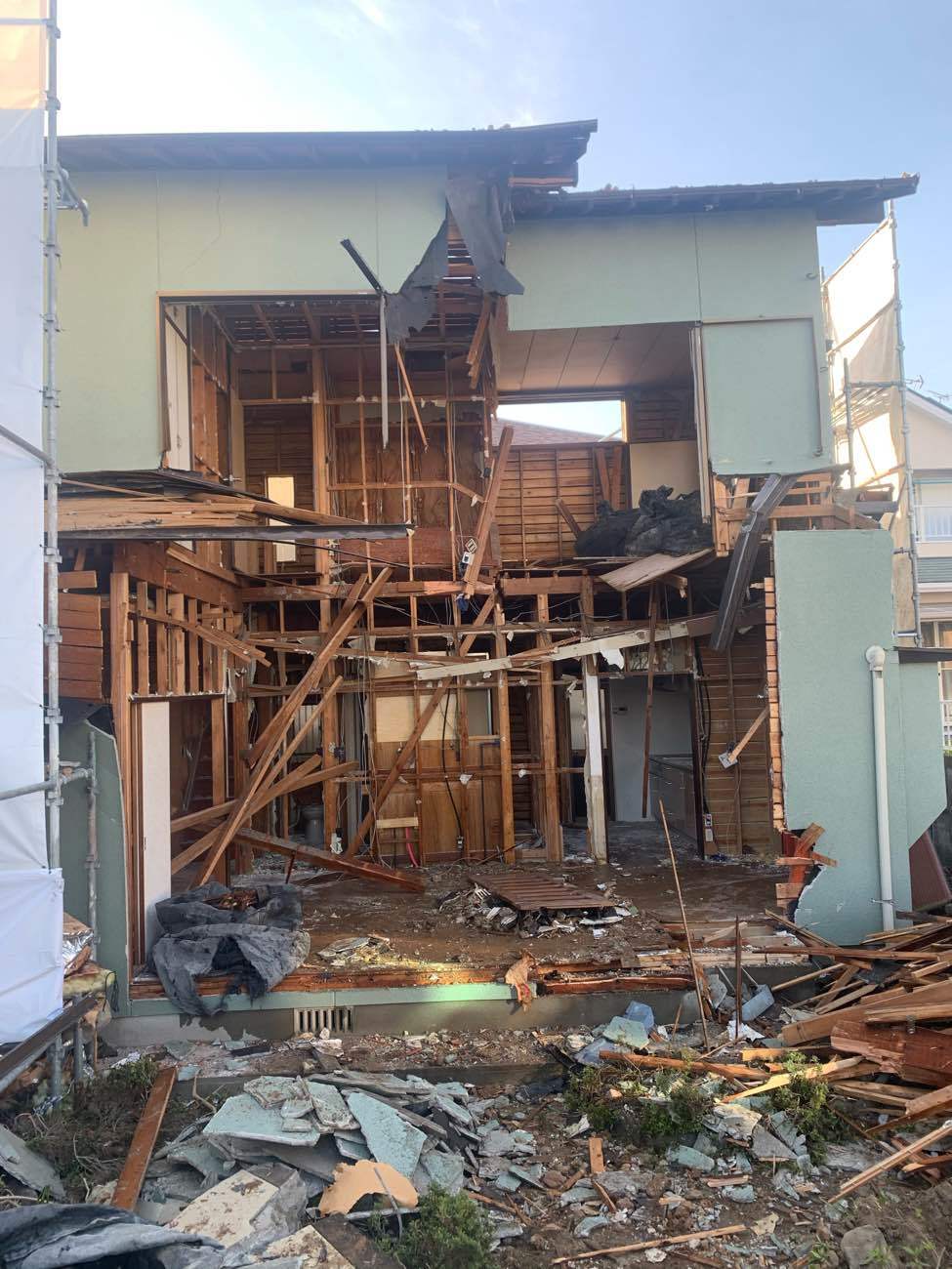 足場解体(外注),コンクリートガラ積込・搬出,基礎解体,廃材片付け