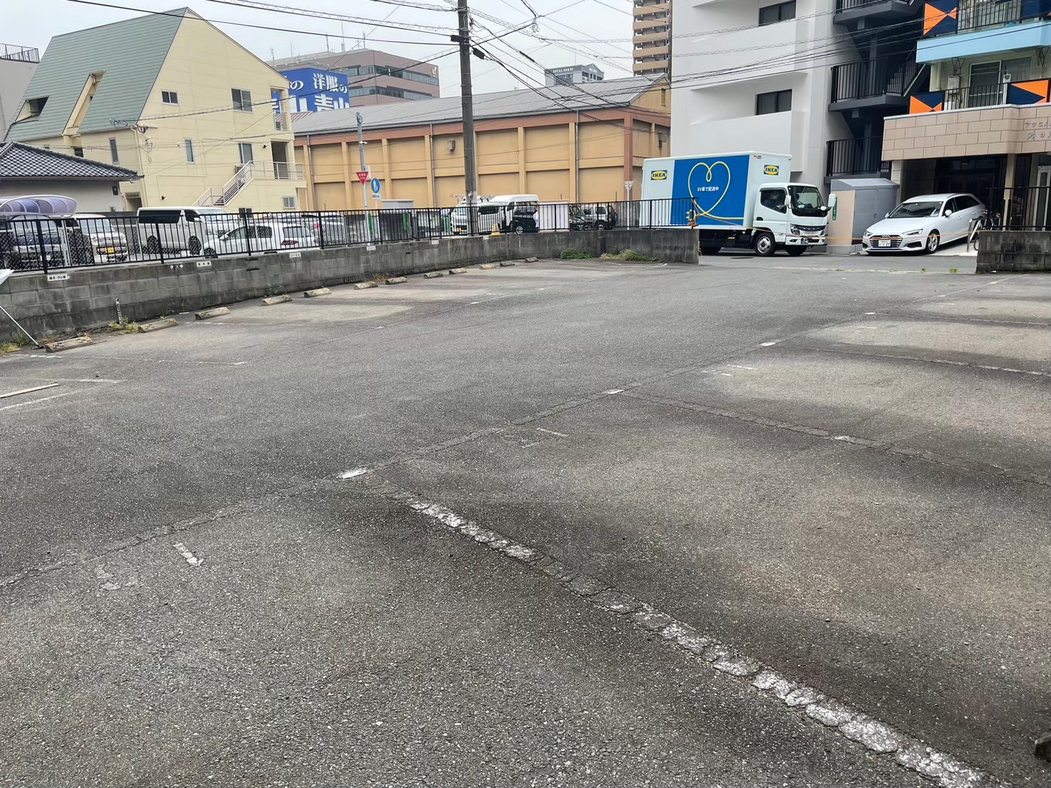 敷地内のトラックを止めるスペースの確認