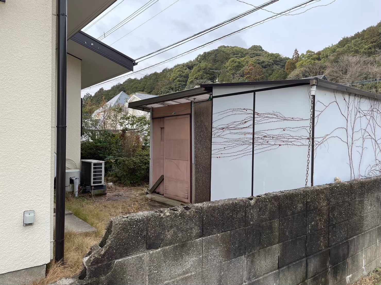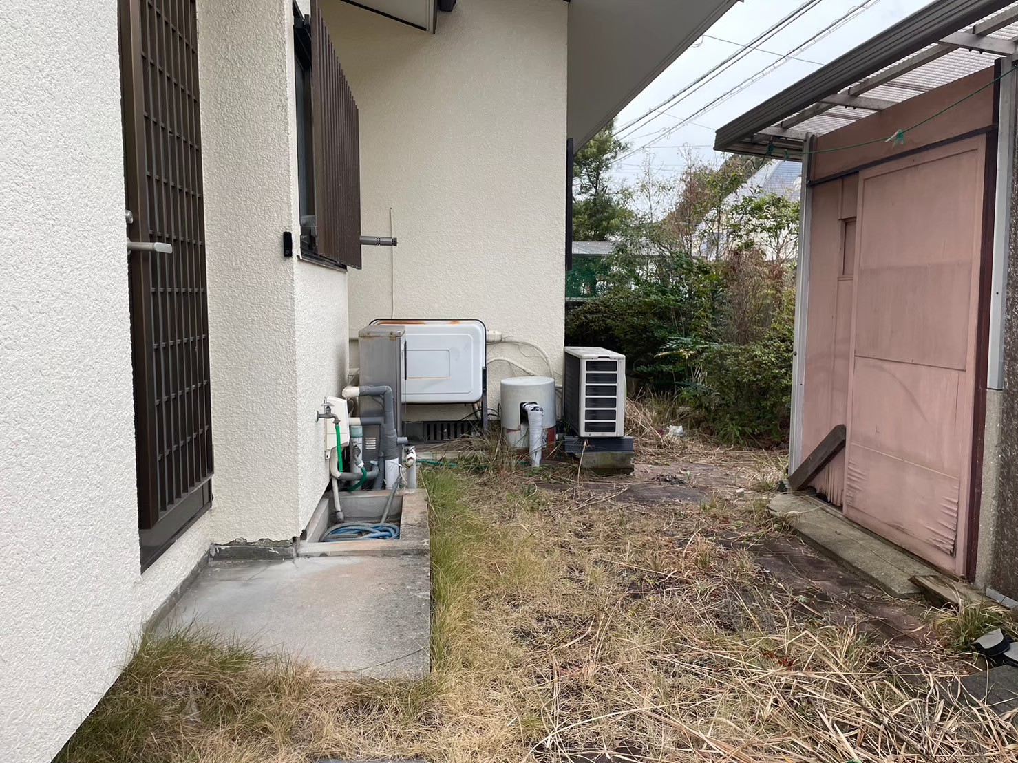 木造2階建、井戸、物置、樹木、カーポート、